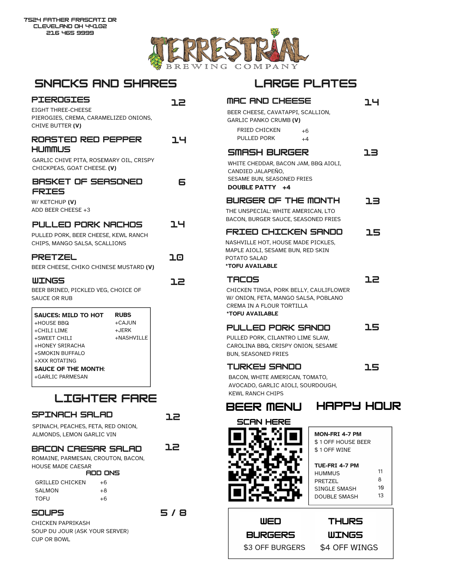 Sunday: 10 AM – 10 PM (Brunch 11 AM – 3:30 PM, Full Menu 4 PM – 9 PM)
